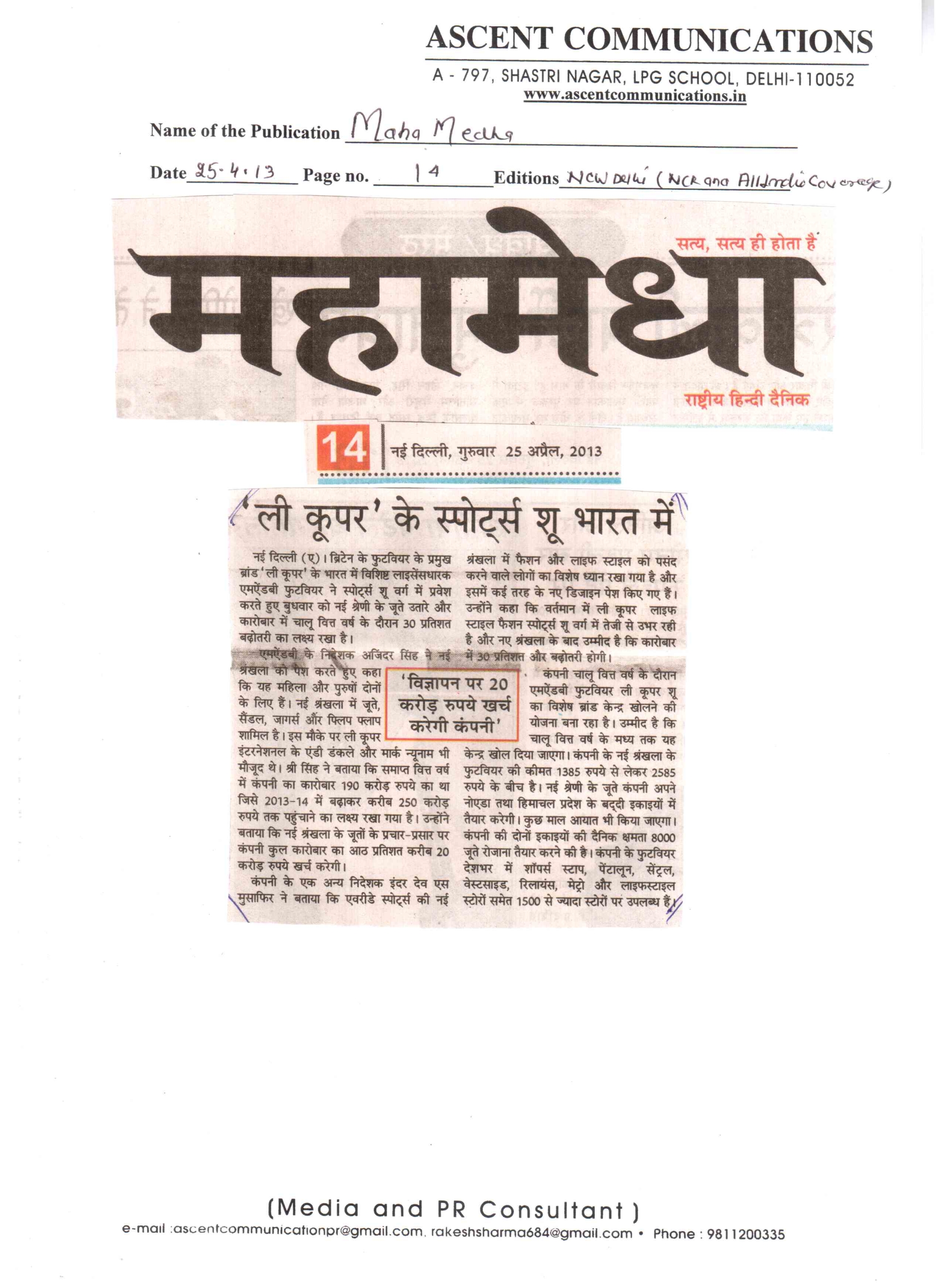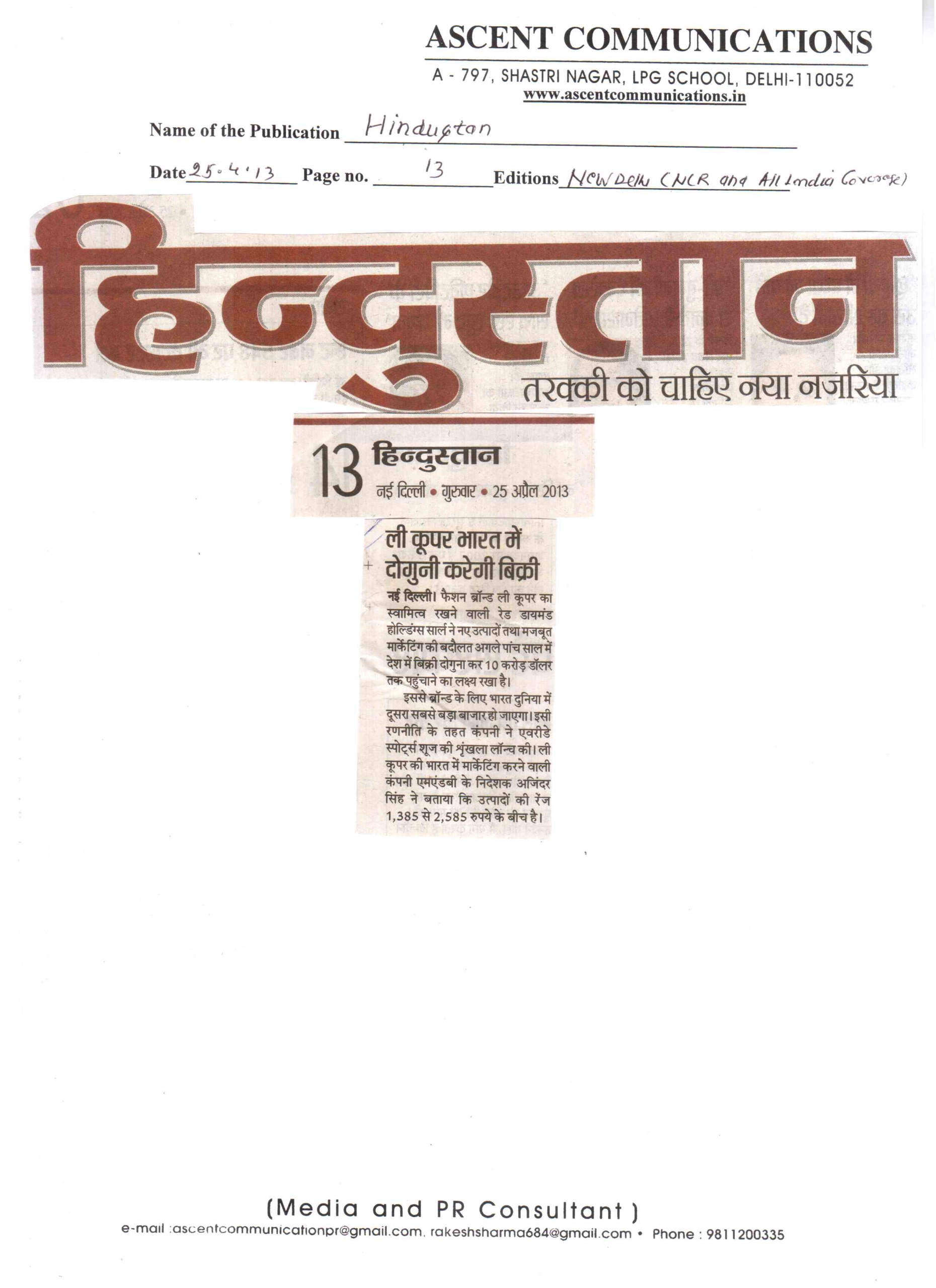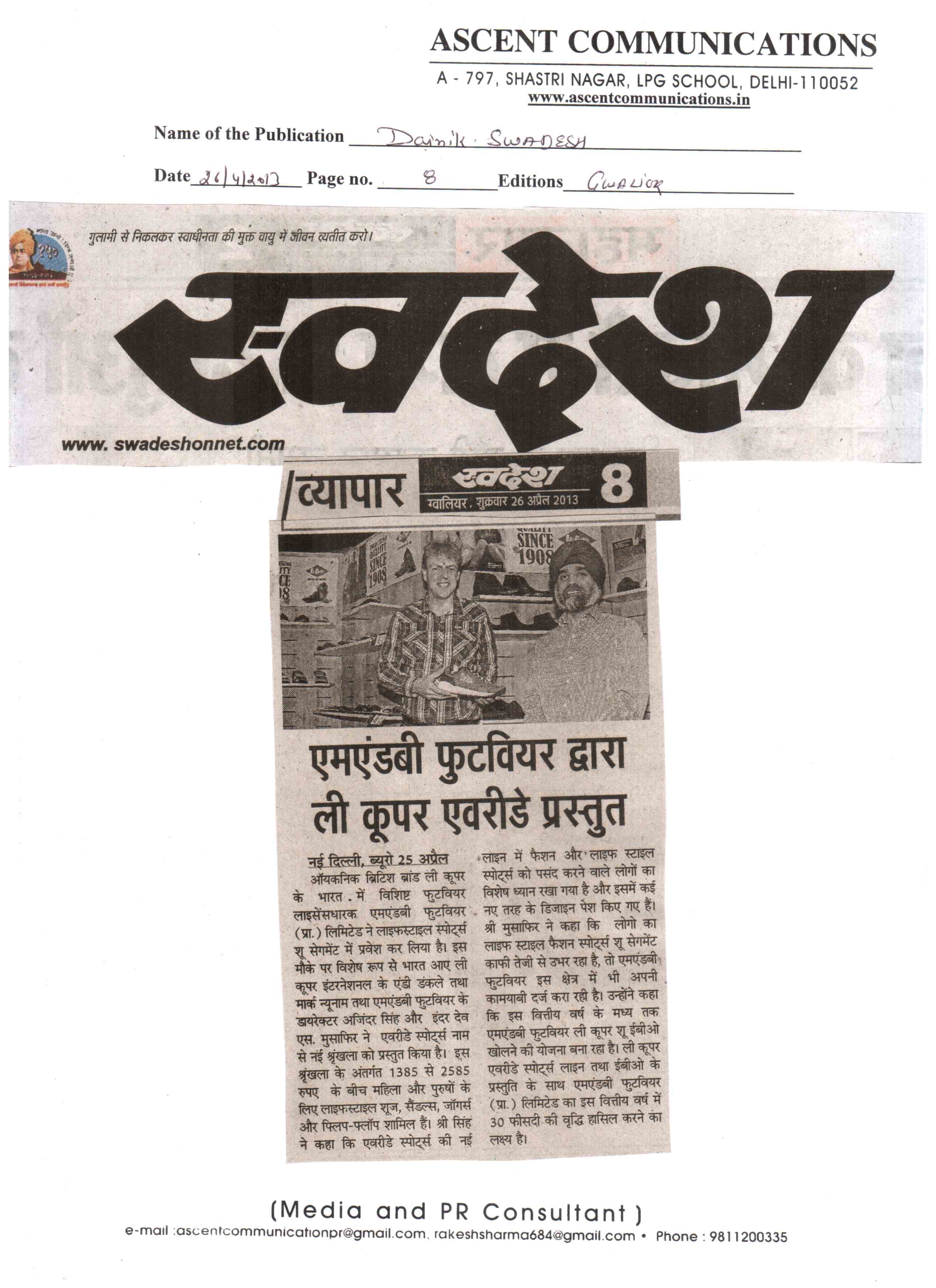 Media we are getting good support by all main leading Newspapers,Magazines and News Channels